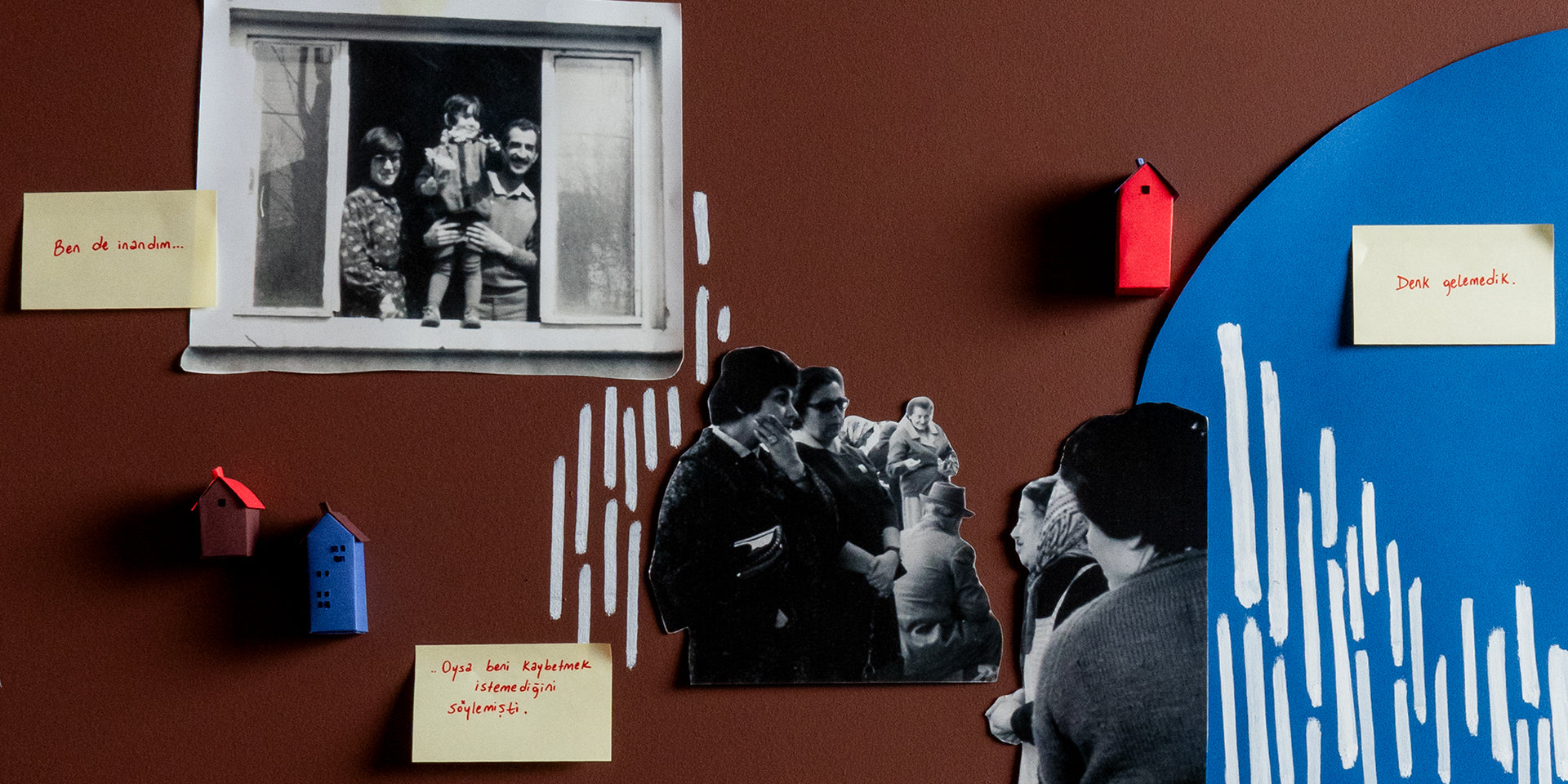 Sahip olduğumuz zaman kavramı “kaybettiklerimizi” de içinde barındırıyor. Olaylar oluyor, insanlar gidiyor, zaman geçiyor ve bizler; spesifik bir zamanda, bir kareye hapsettiğimiz olaylar, ‘anı’ haline geldikten sonra da, o anın içinde kurduğumuz bağları taşımaya devam ediyoruz. Bu çalışmalarda; kullandığım fotoğrafın önce yapısını sonra da iki boyutluluğunu bozarak iki farklı an ve iki farklı duygu kurguluyorum. O anın içinde ‘biriyle’ veya ‘yaşanan olayla’ bütünleşmeyi ve o an geçtikten sonra kurulan duygusal bağı taşımayı anlatıyorum. İzleyenler için: Bağ kurduğumuz ve hayatımızdan giden herkese, izleyenlerin kime ait olduğunu bilmediği bir fotoğraf üzerinden ‘anma’ eylemi gerçekleştiriyorum.